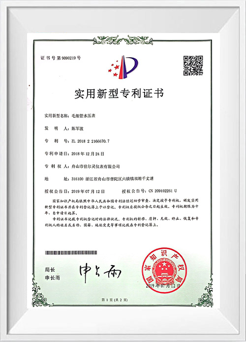 گواهی- Zhoushan Jiaerling Meter Co., Ltd.